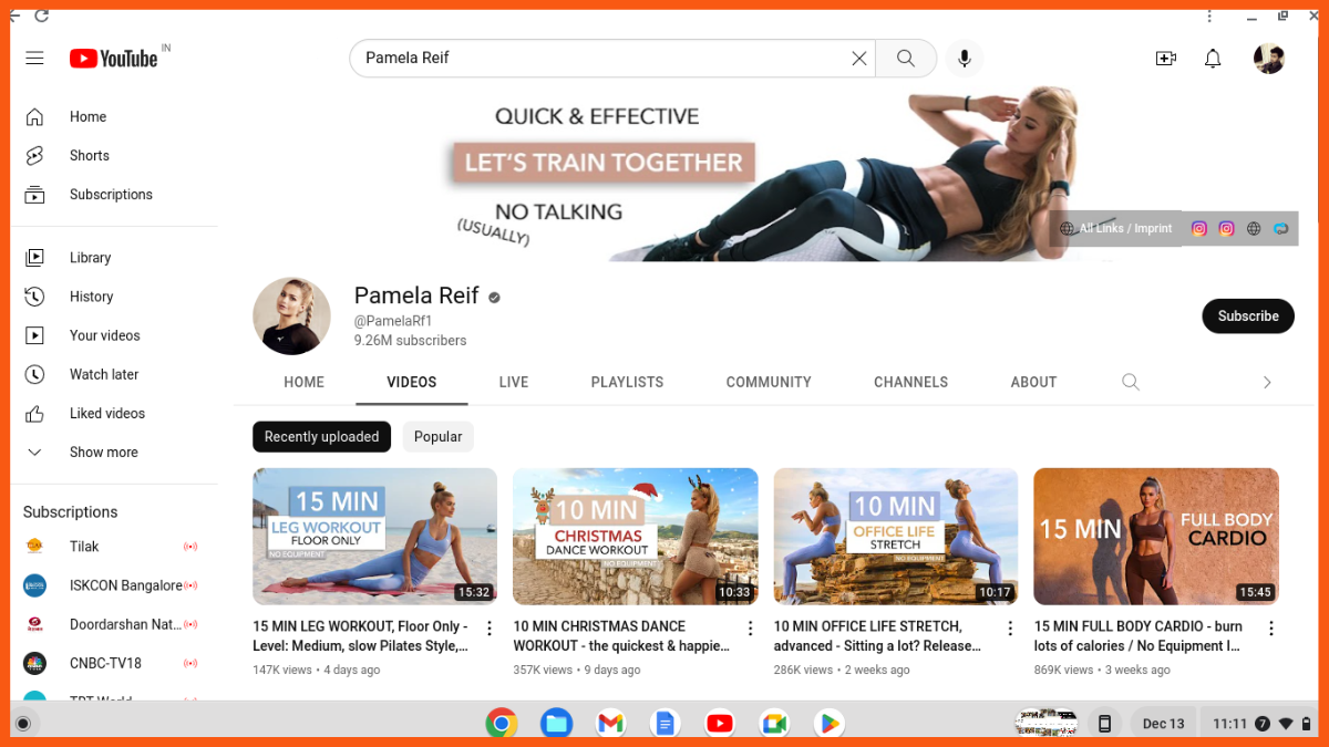 La plus grande chaîne YouTube de fitness : Pamela Reif / 9,25 millions d'abonnés