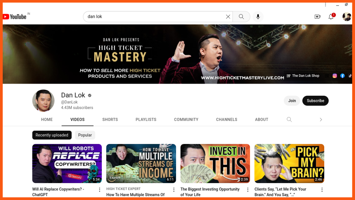 La plus grande chaîne YouTube de commerce électronique : Dan Lok / 4,43 millions d'abonnés