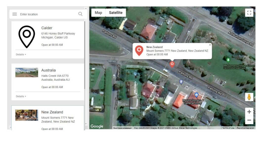 En outre, le module Magento 2 permet aux propriétaires de magasins de placer la carte avec les emplacements de magasins hors ligne répertoriés sur n'importe quelle page de site Web.