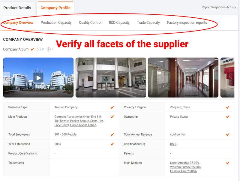 - Periksa Ulasan dan Peringkat Pemasok – Semua pemasok terverifikasi Alibaba memiliki profil perusahaan terperinci di mana Anda dapat melihat metrik perusahaan mereka.