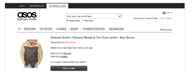 Anda dapat mengambil strategi ini satu langkah lebih jauh, dan alih-alih mengirim pelanggan pulang dengan tangan kosong, pandu mereka ke produk yang berbeda. Misalnya, ASOS memberi orang pilihan untuk berbelanja pakaian lain dari merek yang sama dan jaket lain.