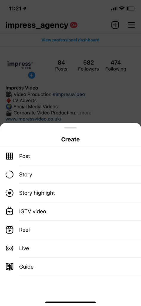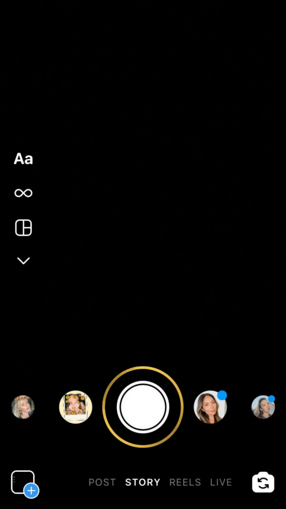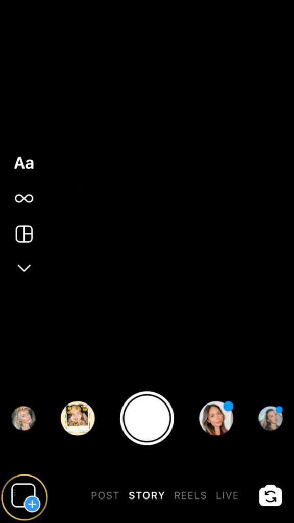Langkah 1: Klik tombol plus di bagian atas layar dan pilih "cerita" dari berbagai opsi yang tersedia atau geser ke kiri.