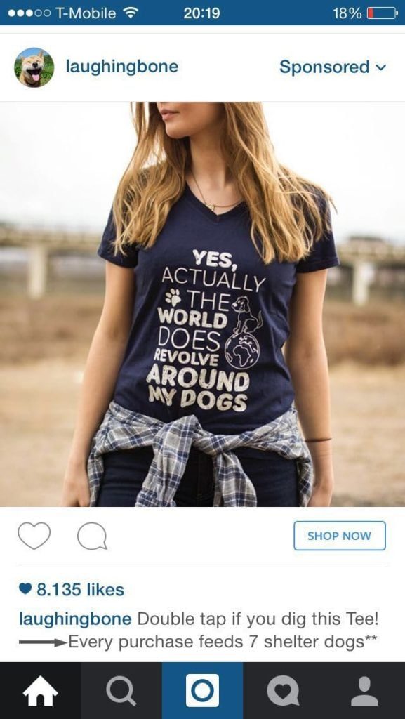 Lihatlah contoh ini dari akun Instagram LaughingBone yang menjalankan IHeartDogs, sebuah situs yang ditargetkan untuk pecinta anjing.