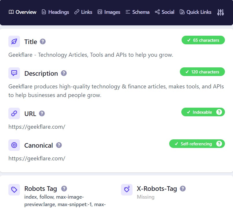 Ekstensi SEO terperinci membantu mendapatkan informasi yang berarti tanpa melihat melalui kode sumber. Pengguna juga dapat memperoleh wawasan tentang tautan, judul, skema, gambar, tautan sosial, dan tautan cepat. Jika Anda ingin masuk ke tautan NoFollow, Anda dapat menangkap detail sambil menyorotnya secara instan.