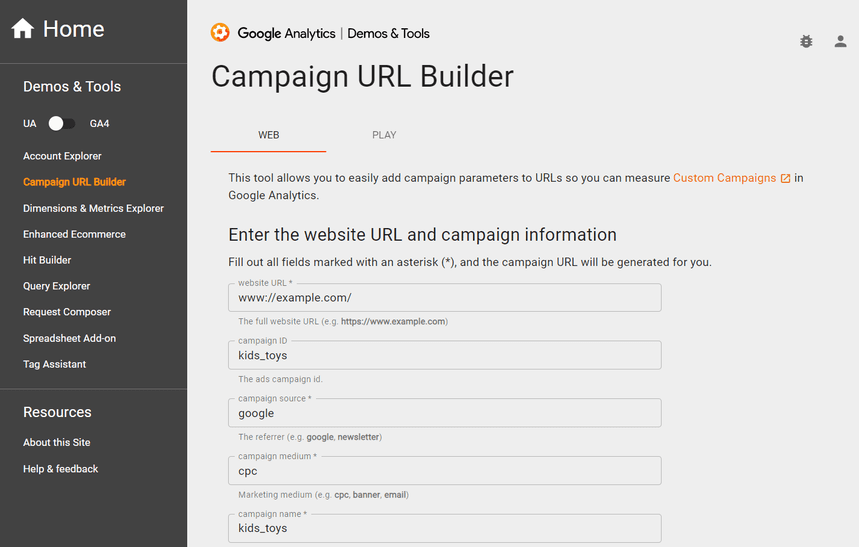 Pembuat URL Kampanye dari Google dapat digunakan untuk membuat tautan dengan tag UTM.