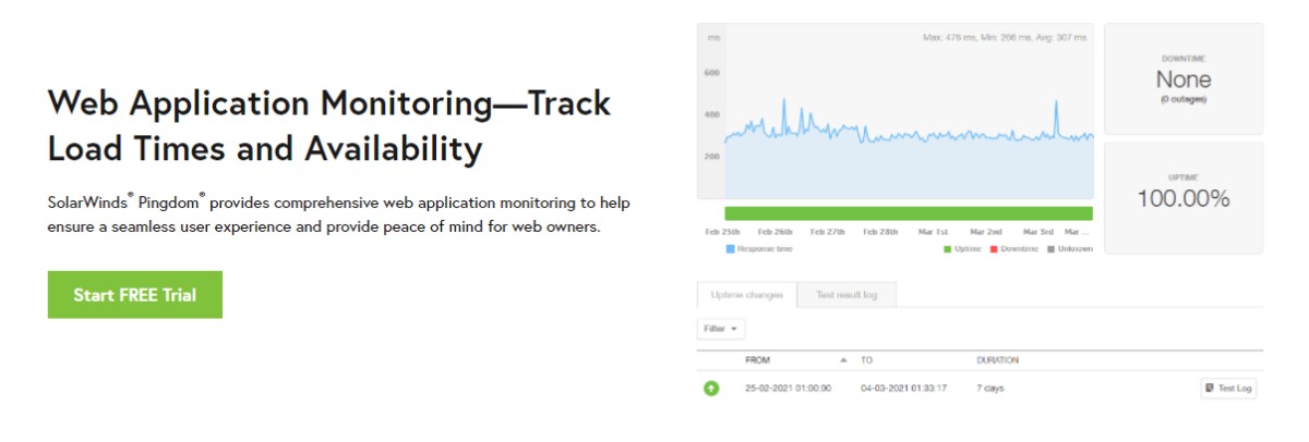 Dapatkan solusi pemantauan aplikasi web dengan SolarWinds Pingdom untuk ketenangan pikiran Anda dan pengalaman pengguna yang luar biasa. Memastikan aplikasi web Anda selalu tersedia untuk pengguna Anda diperlukan, dan dengan demikian, Pingdom ada untuk Anda sehingga aplikasi web Anda akan berfungsi penuh dan operasional.