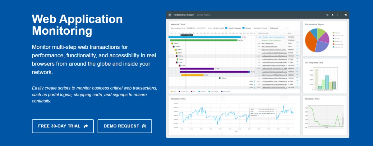 Ini memantau jalur kritis yang diambil oleh pengguna akhir, termasuk formulir login, memverifikasi konten situs web, dan aplikasi eCommerce.