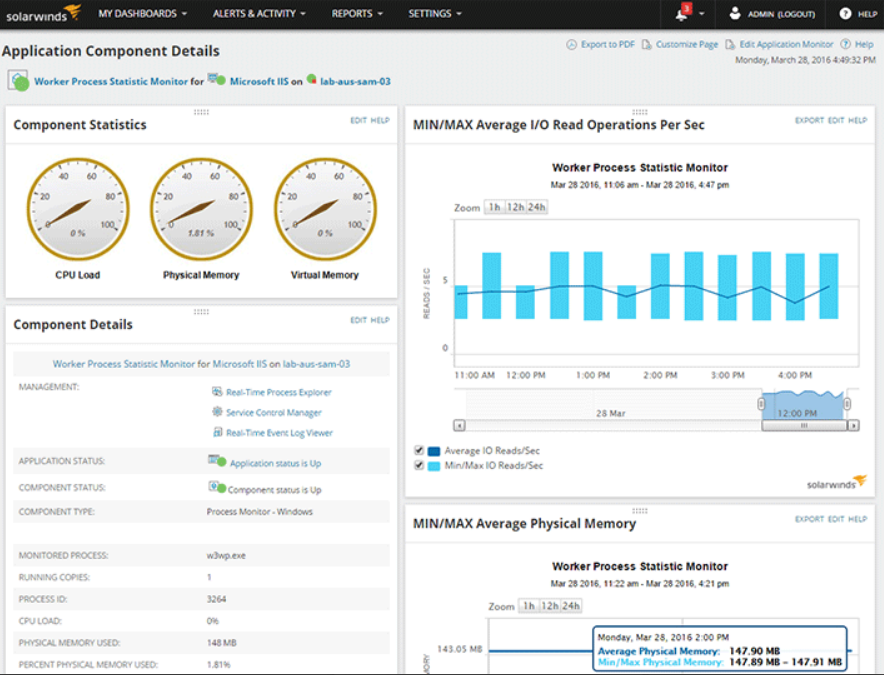 Ketahui status kesehatan aplikasi web Anda dengan Server dan Monitor Aplikasi SolarWinds. Ini membantu Anda memecahkan masalah kritis segera dengan memantau komponen aplikasi, memperbaiki masalah secara otomatis seperti memulai ulang kumpulan aplikasi, dll.