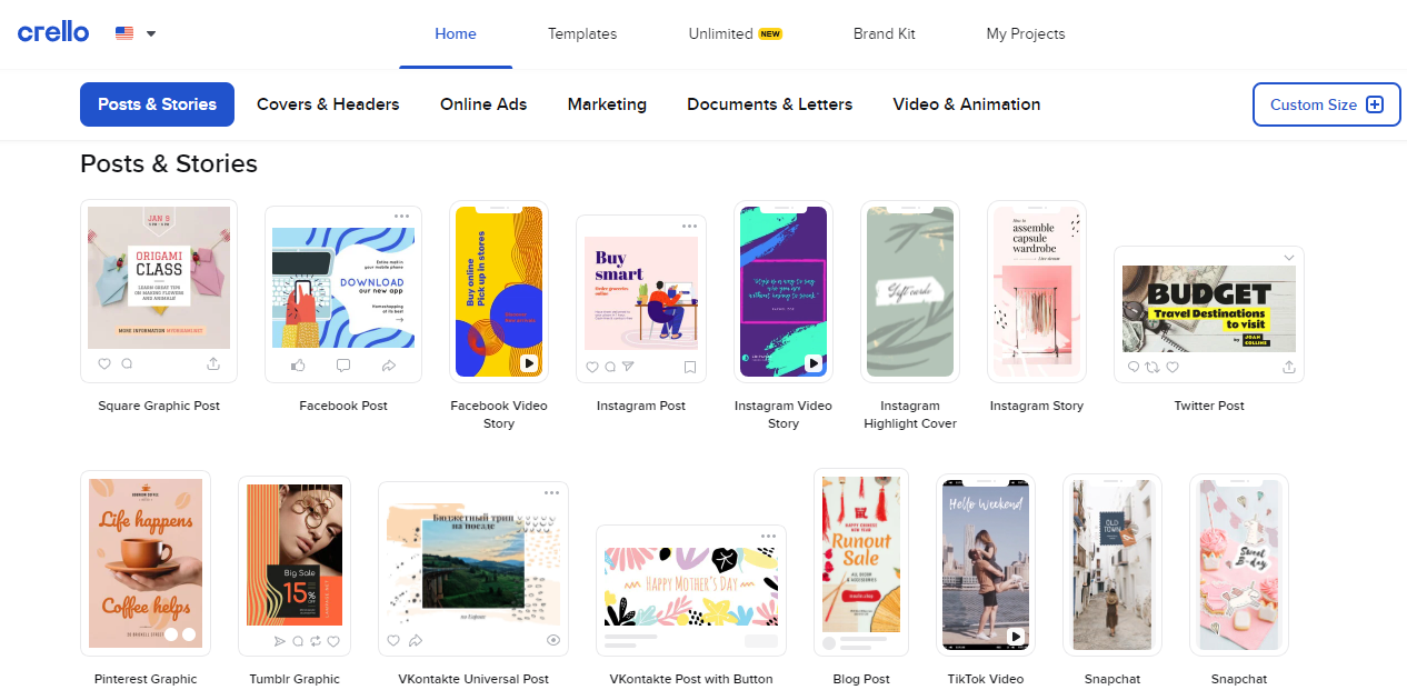 Crello è una soluzione semplice per creare design straordinari per i post sui social media, tra cui storie di Instagram, annunci di Facebook e Instagram, intestazioni di Twitter, miniature di YouTube, grafica di Pinterest e molto altro.