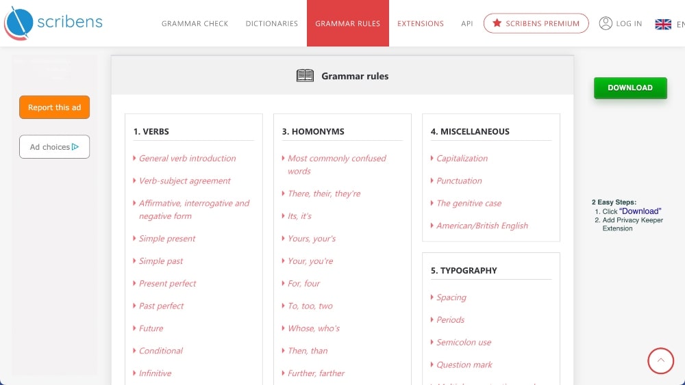 La versione gratuita di Scribens ha controlli grammaticali e di punteggiatura di base.