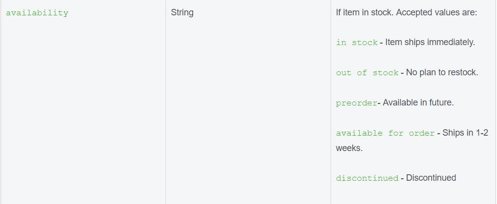 In effetti, i prodotti potrebbero esaurirsi abbastanza rapidamente, specialmente durante i periodi di punta, e sicuramente non vuoi pubblicizzare prodotti che non sei in grado di vendere. Facebook in realtà consente diversi valori di disponibilità: