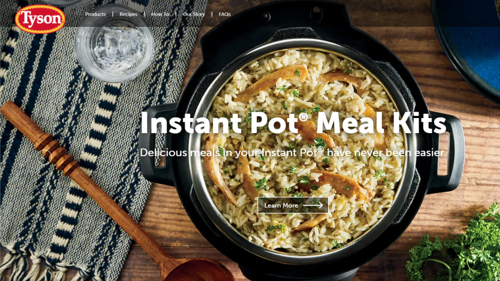 Tyson è uno specialista di prodotti a base di pollame di prima qualità, che vende crocchette teneri e piatti pronti da cucinare. Il suo web design ha un'interfaccia amichevole, oltre a numerose ricette per ispirare le abitudini culinarie dei clienti.