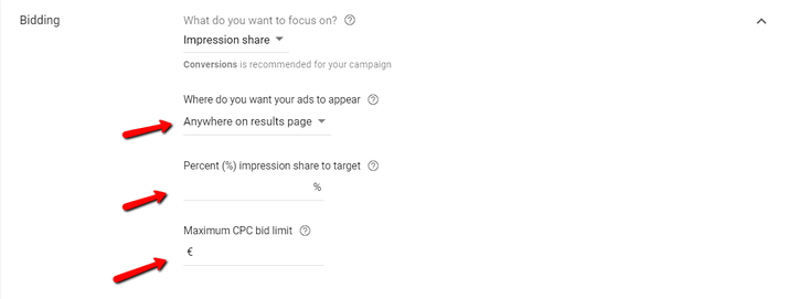 Questo è il motivo per cui un anno prima del tramonto della posizione media Google ha introdotto la strategia di offerta automatica per la quota impressioni target delle campagne sulla rete di ricerca. E ora è l'unico possibile.