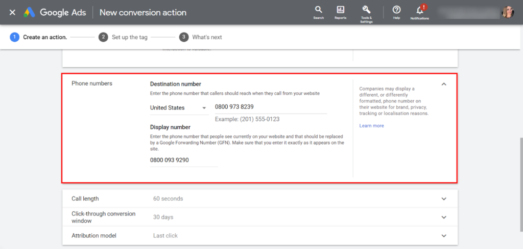 Per le conversioni che iniziano con una telefonata, avrai bisogno di un numero di inoltro di Google in modo da poter importare le conversioni di chiamata in Google Ads.