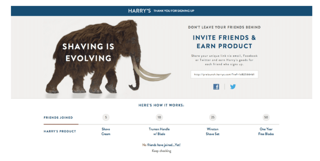 Harry's ti offre un prodotto in cambio dell'invito di amici (fonte)