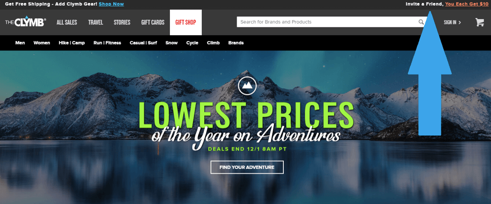The Clymb consente ai suoi clienti di poter invitare un amico in ogni momento. (Fonte: The Clymb)