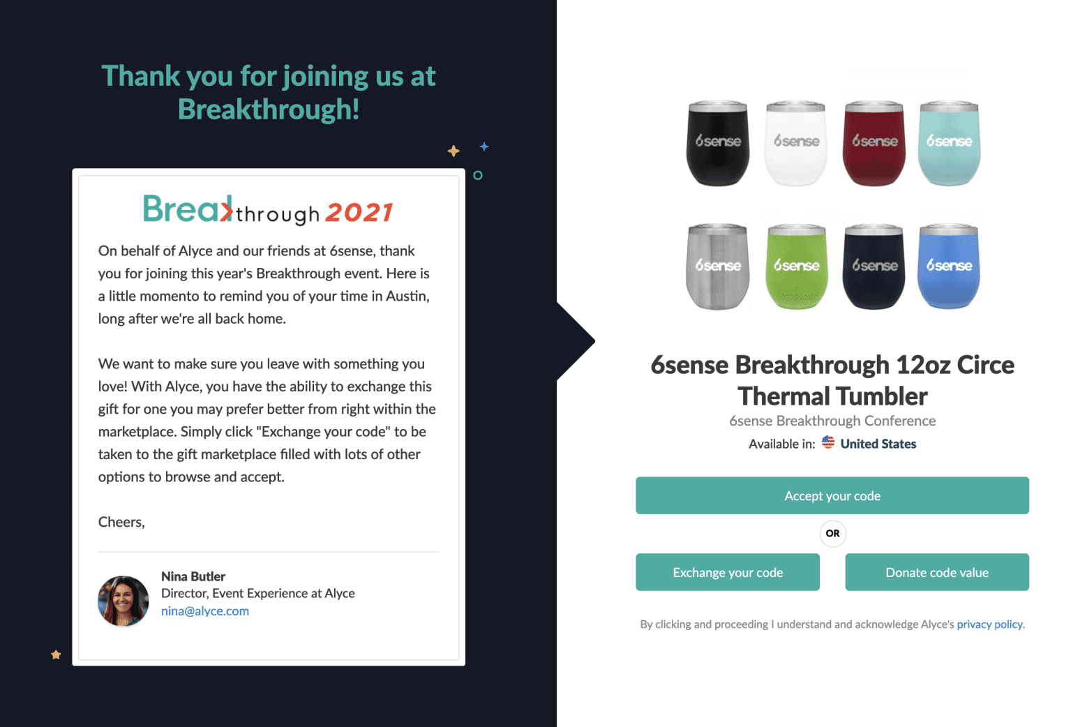Alyce は、見込み客に贈る 30,000 を超えるギフト オプションを提供しています。 頭に残る権利を得るには、一般的なものではなく、心のこもった贈り物でリードする必要があります。