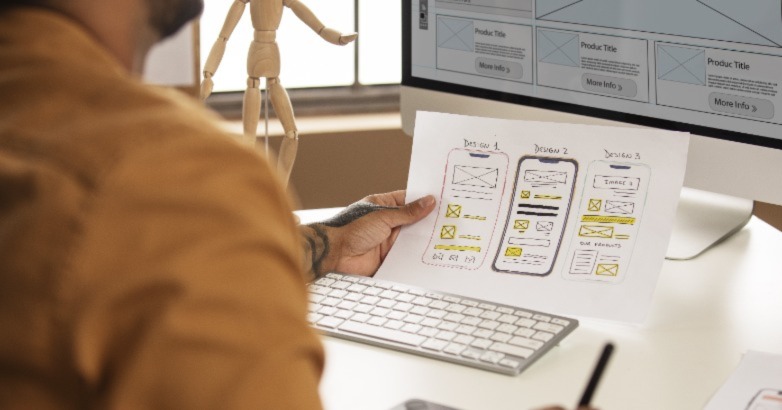 アプリ開発者は、次の作業に進む前に、紙の上にアプリのモックアップを作成します