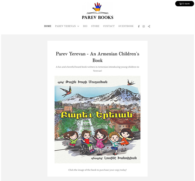 Taleen Moughamianは、アルメニア系アメリカ人の子供たちの作者であり、彼女の執筆で2つのことを成し遂げたいと考えています。それは、特にアルメニア人のディアスポラからの幼い子供たちをアルメニア語に紹介することと、若い年齢でアルメニアとのつながりを育むことです。 彼女の著書ParevYerevanを通じて、彼女は若いアルメニア系アメリカ人にコミュニティと文化遺産の感覚を教え込みたいと考えています。 彼女の著者のウェブサイトはシンプルですが、明るいイラストと子供に優しい言葉の使用を取り入れており、彼女が引き付けようとしている種類の読者に最適です!