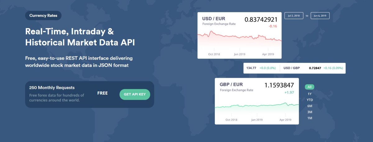 Exchangeratesは、日中、履歴、およびリアルタイムの市場データAPIであり、JSON形式で世界中の株式市場データを配信する使いやすく無料のRESTAPIインターフェイスを提供します。 60秒ごとに更新される数千の通貨の信頼性が高く、正確で、リアルタイムの為替レートデータを取得できます。