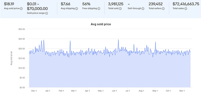 Google トレンドは、一定期間にわたる特定のキーワードの需要を示します。 eBay 固有のデータは表示されませんが、市場の最新動向を把握するのに役立ちます。
