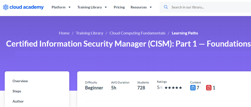 Cloudacademy では、CISM 試験に合格しやすくする CISM 基礎コースを提供しています。