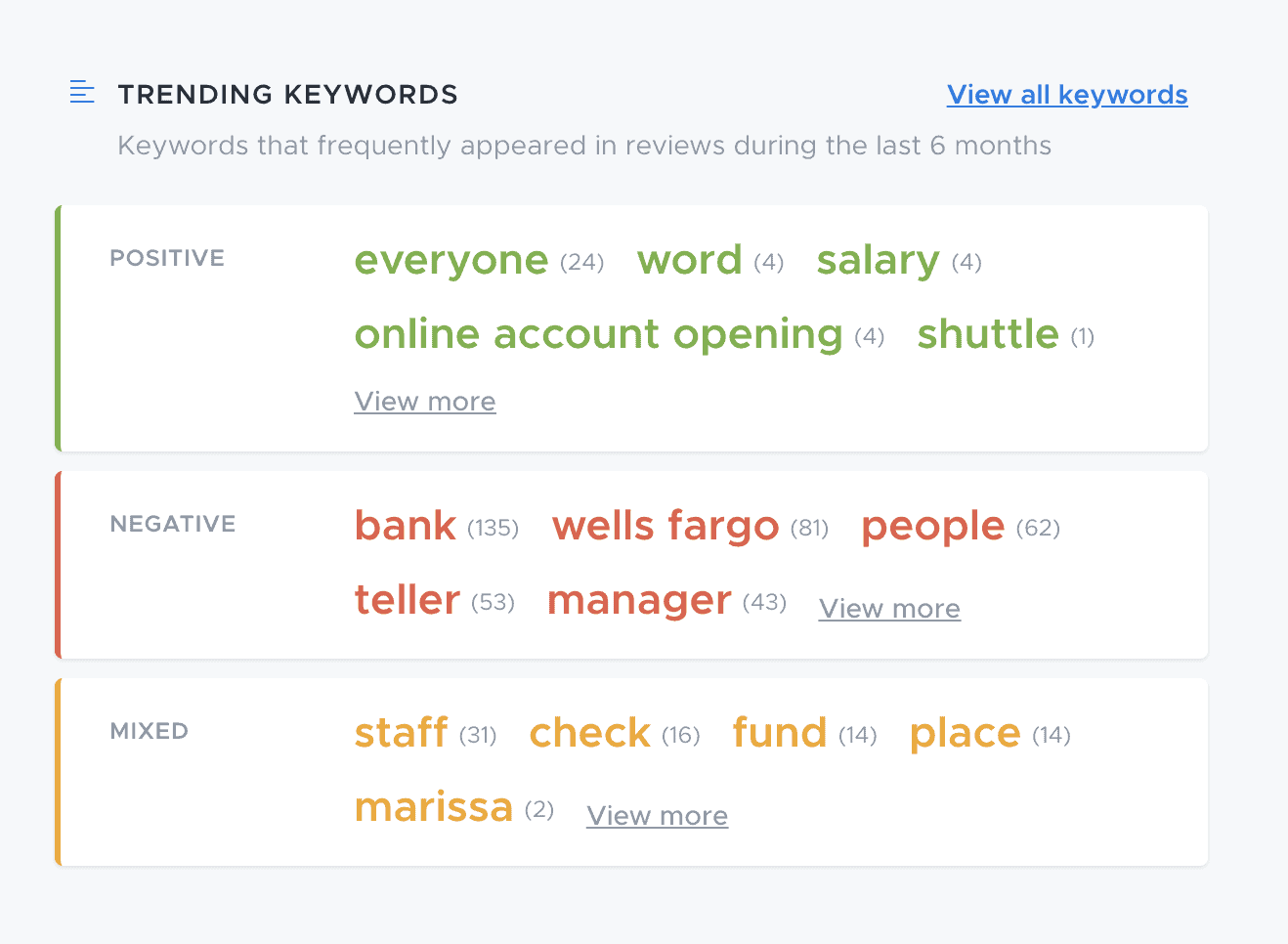 レビューは単なる評判データのソースではありません。 また、これらは顧客からのフィードバックの重要な情報源であり、企業が顧客体験の傾向を特定し、一般的な問題点を明らかにすることを可能にします。