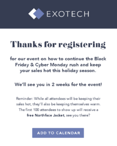 仮想イベントの平均欠席率は 35% に達する可能性があるため、イベントの前に仮想イベント登録者の注意を引き付けておくために、ギフトで参加する理由を彼らに与えてください!