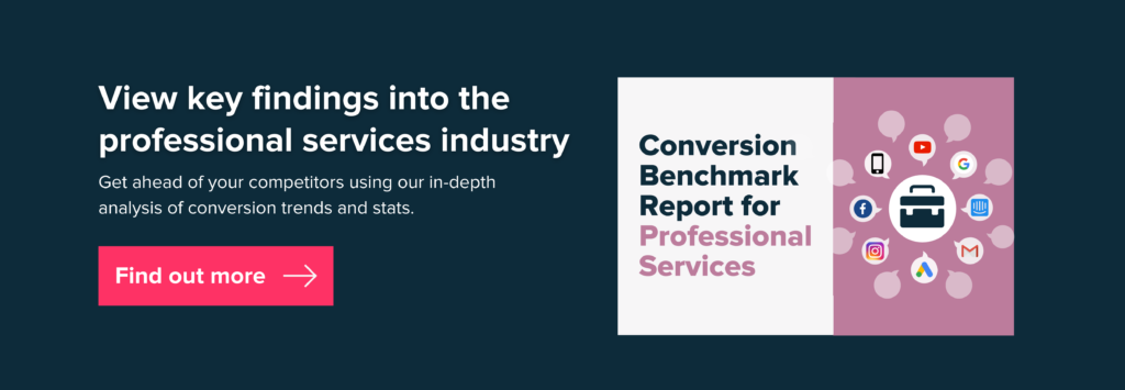 ただし、これらは業界平均にすぎないことを忘れないでください。 他の専門サービスマーケティングチームにとってうまくいくかもしれないことは、あなたにとって最善ではないかもしれません。