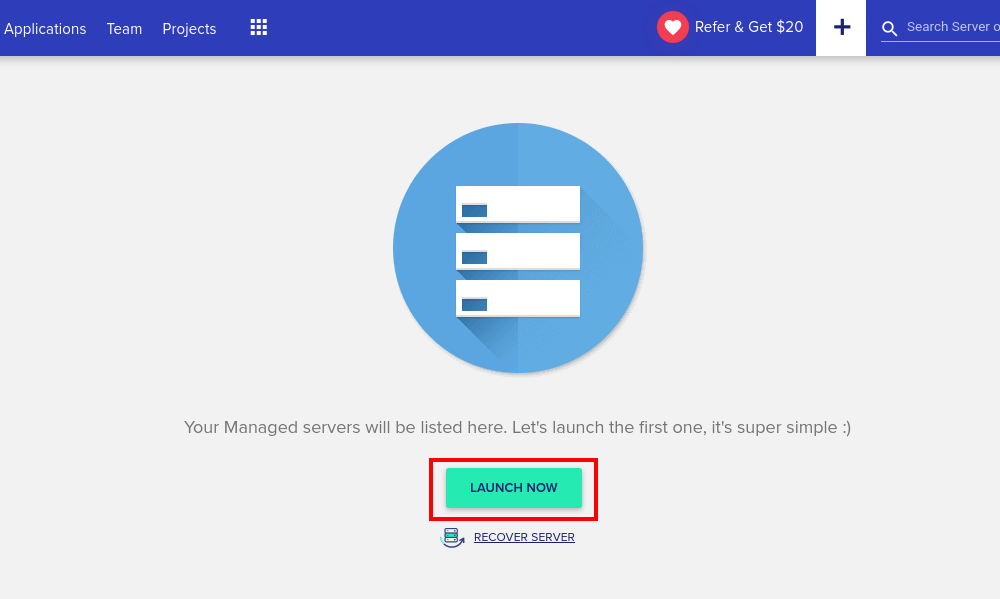 ステップ1。 アカウントにサインアップした後、サーバーの起動に進むことができます(画像を参照)。