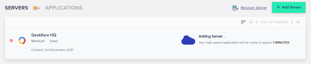 完了したら、サーバーをクリックして設定とサーバー管理オプションにアクセスできます。