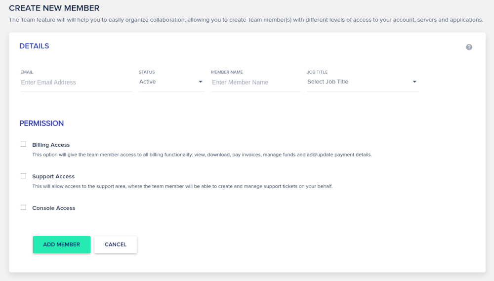 Cloudwaysを使用すると、必要に応じて複数のプロジェクトを追加したり、チームメンバーを追加したりできます。 請求、サポート、または技術スタッフのコンソールのみを含む選択的なアクセスを提供することを選択できます。