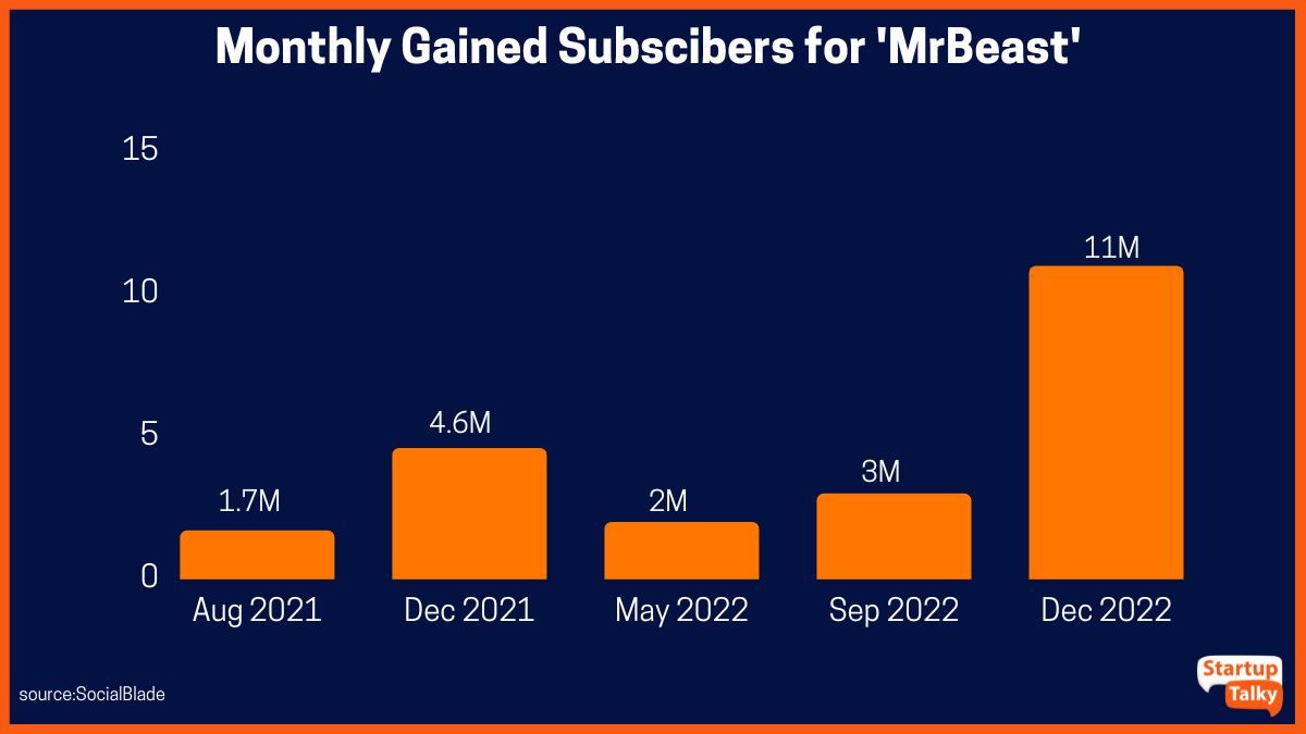 彼の YouTube ビデオを見に行くと、この男が他に類を見ないことに気付くでしょう。 彼は正気ではなく、彼のビデオ トピックは真似できません。 現代のインターネットで目にするのは、誰もがコンテンツの波に乗り、最も有名なトレンドを真似しようとしているということです。 一方、MrBeast は独自のトレンドを作成します。 彼が作るものは何でも真似できないほどの努力が必要です。 これにより、ジミーは比類のないものになり、彼が成長するのに最適な場所が生まれます。