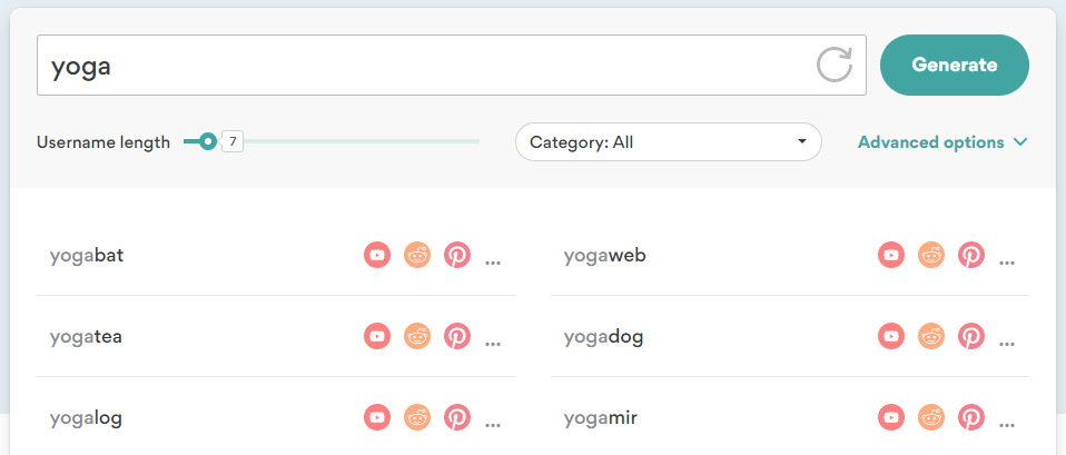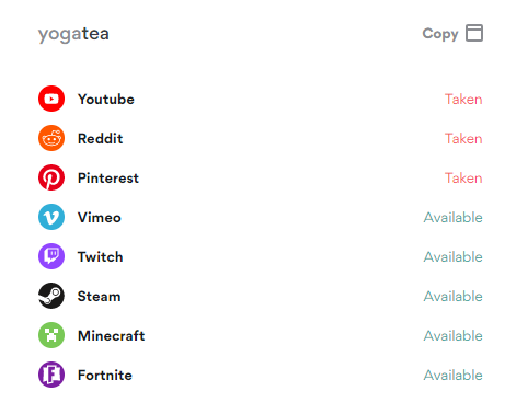 생성된 각 사용자 이름을 클릭하여 다른 소셜 플랫폼에서 사용할 수 있는지 확인할 수도 있습니다.