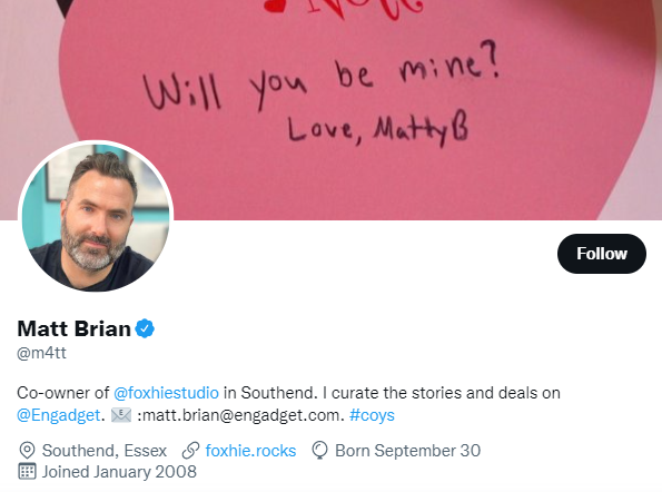 숫자를 사용하기로 결정했다면 조금 창의적이 될 수 있을 것 같습니다. 예를 들어 Matt Brian의 Twitter 핸들을 보십시오.