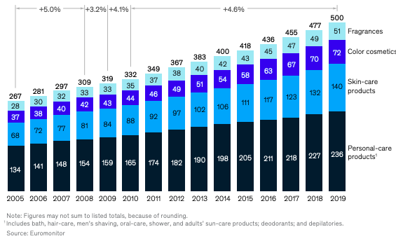 그게 다가 아닙니다. 2025년까지 미용 산업의 매출은 7,160억 달러에 이를 것으로 예측됩니다( Statista ). 왜요? 우리가 지금까지 본 연도별 추세와 에스티 로더가 언급한 "립스틱 효과"를 포함하여 여러 가지 이유가 있습니다.
