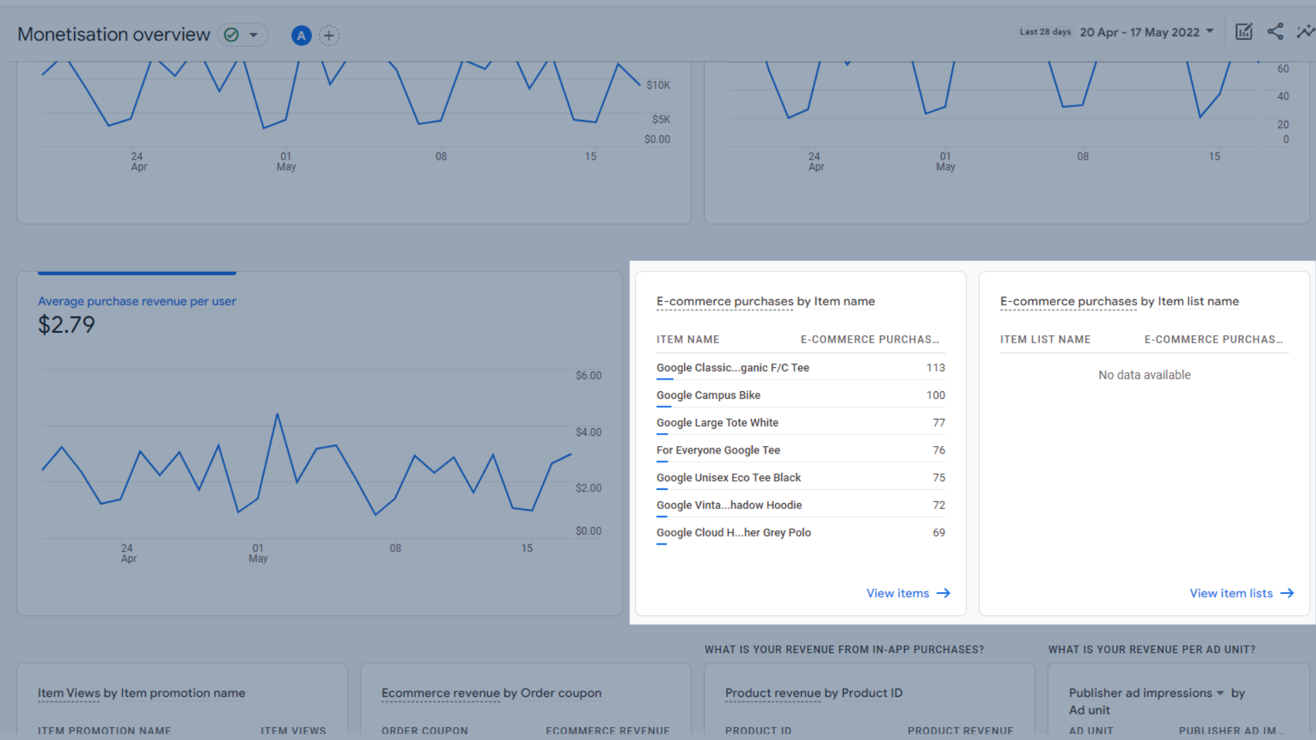 끝점을 사용하여 Google 애널리틱스 4 데모 계정에서 가장 일반적인 구매 경로를 확인할 것입니다.