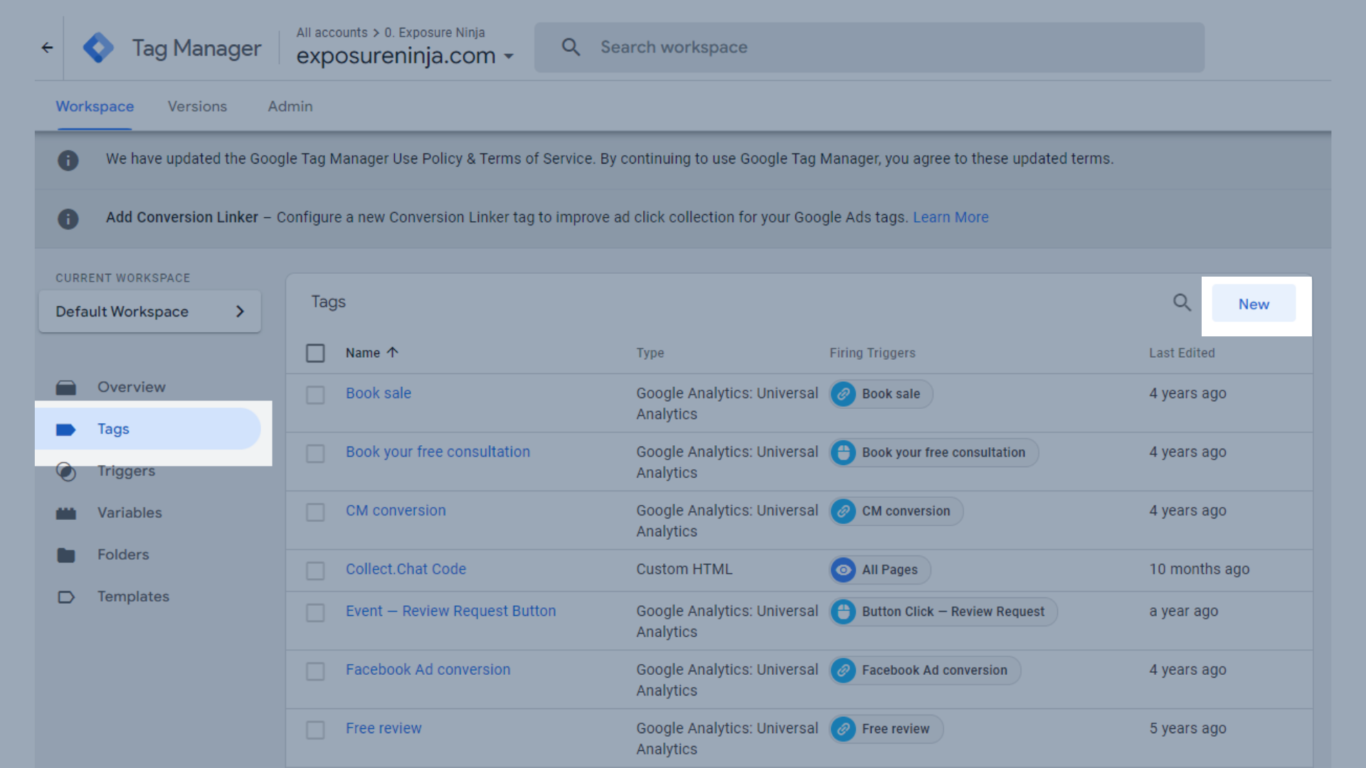 가장 먼저 할 일은 웹사이트에 새 태그를 설정하는 것입니다.