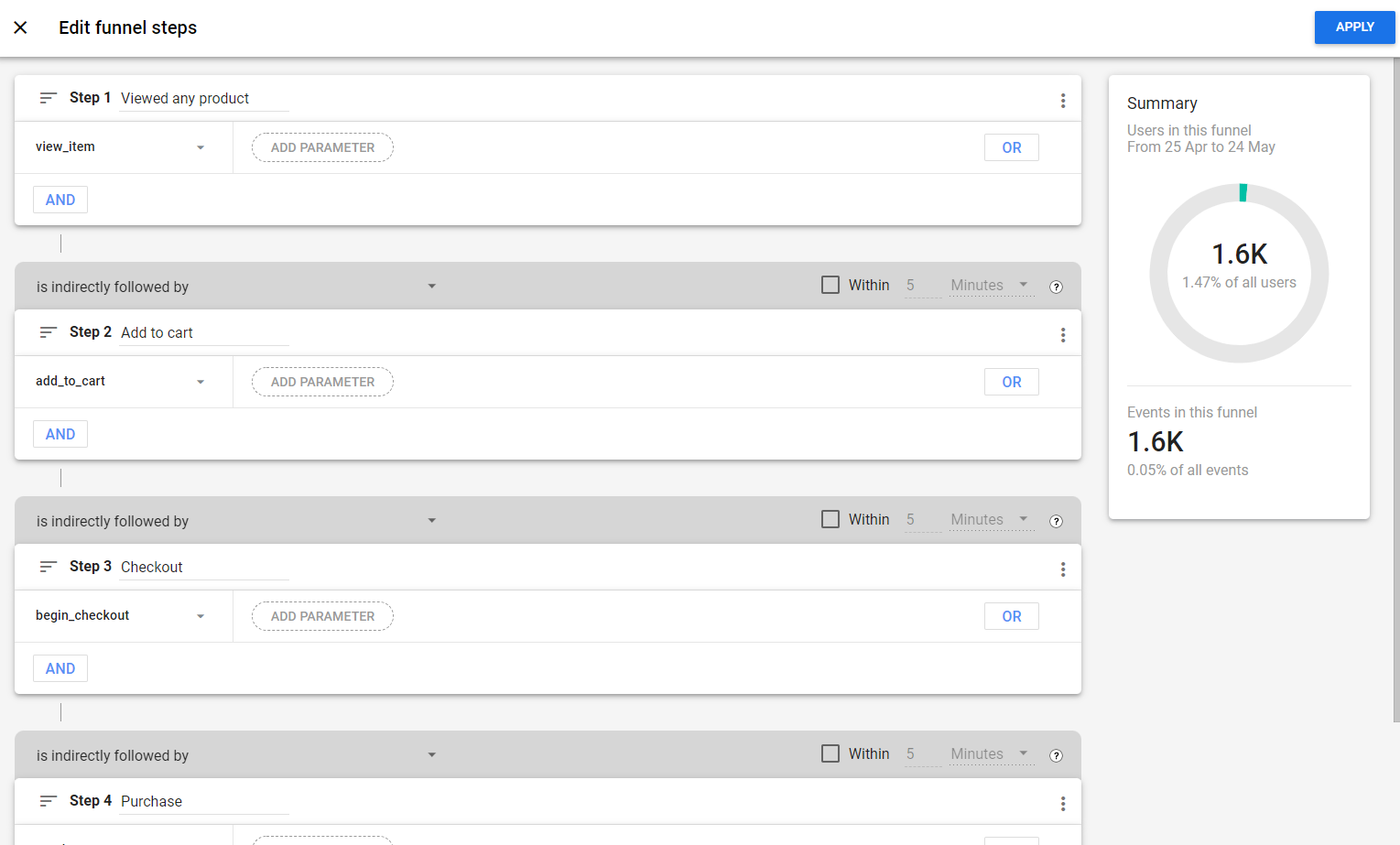 여기에는 몇 가지 사용자 정의 가능한 요소가 있습니다. 웹 사이트에서 제품을 검색한 후 10분 이내에 장바구니에 제품을 추가한 사람들만 추적하고 싶습니까? 그러면 그렇게 할 수 있습니다.