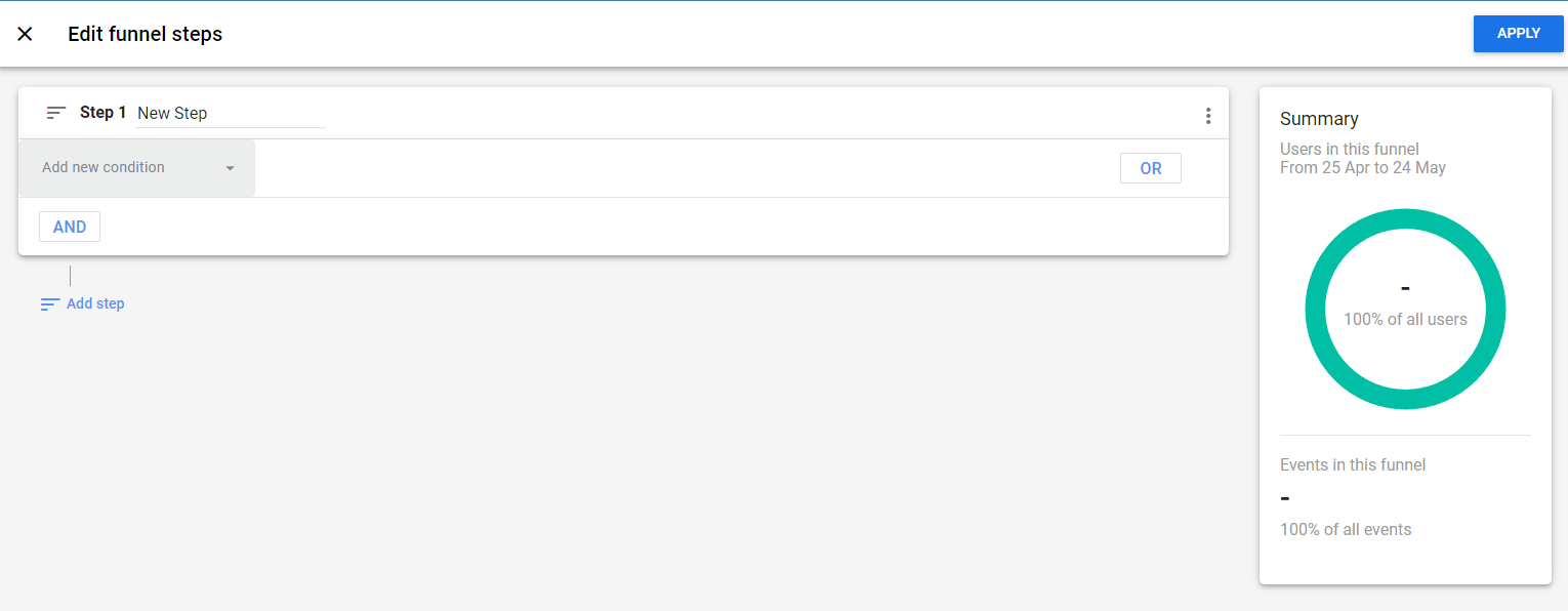 이것은 초보자 가이드이므로 여기에서 매우 기본적인 사항을 유지할 것입니다. 여기서는 사용자가 이 유입경로에 포함되기 위해 취해야 하는 단계인 단일 "조건 "을 살펴보겠습니다.