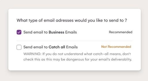 우리는 LaGrowthMachine이 유효하지 않은 이메일 주소를 제공하지 않도록 설계했기 때문에 범용 서버의 경우 특별히 요청하지 않는 한 제공하지 않습니다.