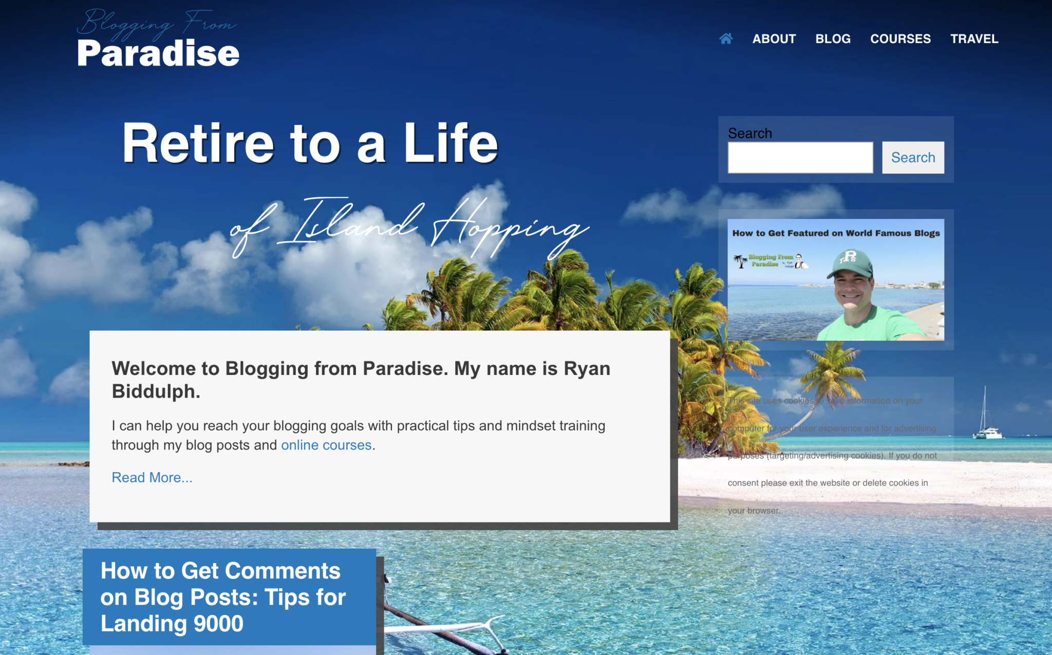 Ryan은 전 세계를 여행하며 자신의 경험에 대해 블로그를 작성하고 다른 블로거가 따라야 할 통찰력을 제공합니다. Ryan은 코스와 전자책 판매를 통해 엄청난 돈을 벌고 있으며 강력한 블로깅 브랜드를 구축하고 다른 블로거들과 관계를 형성함으로써 그렇게 했습니다.