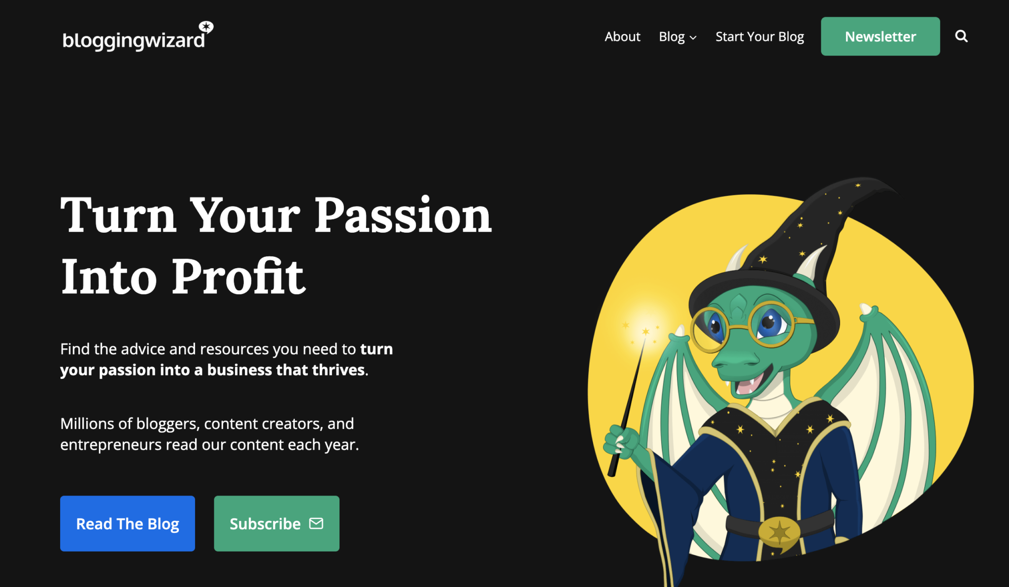 Adam은 블로깅으로 많은 돈을 벌고 있으며 그의 사이트는 그를 공간에서 분명한 권위자로 묘사합니다. 단순히 블로그 게시물을 게시하는 것 이상으로 Blogging Wizard는 심층 가이드, 구독을 통해서만 액세스할 수 있는 VIP 리소스 등을 제공합니다.