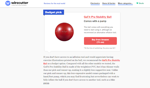 그러나 스포츠 용품에 대한 정기적인 업데이트를 게시하려면 짧은 게시물을 작성해야 합니다. 예를 들어 Wirecutter는 3개의 제품에 대한 리뷰가 포함된 구매 가이드를 게시합니다. 모든 리뷰는 3개의 문장으로 구성되어 있습니다. 가장 중요한 정보만 제공하며 그 이상은 제공하지 않습니다.
