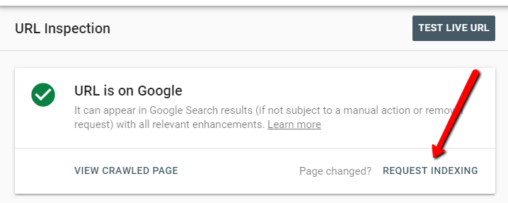 완료되면 블로그의 콘텐츠를 업데이트하고 Google 검색 콘솔로 돌아와 링크 검사 도구를 사용하여 크롤링 및 색인 생성을 요청합니다.