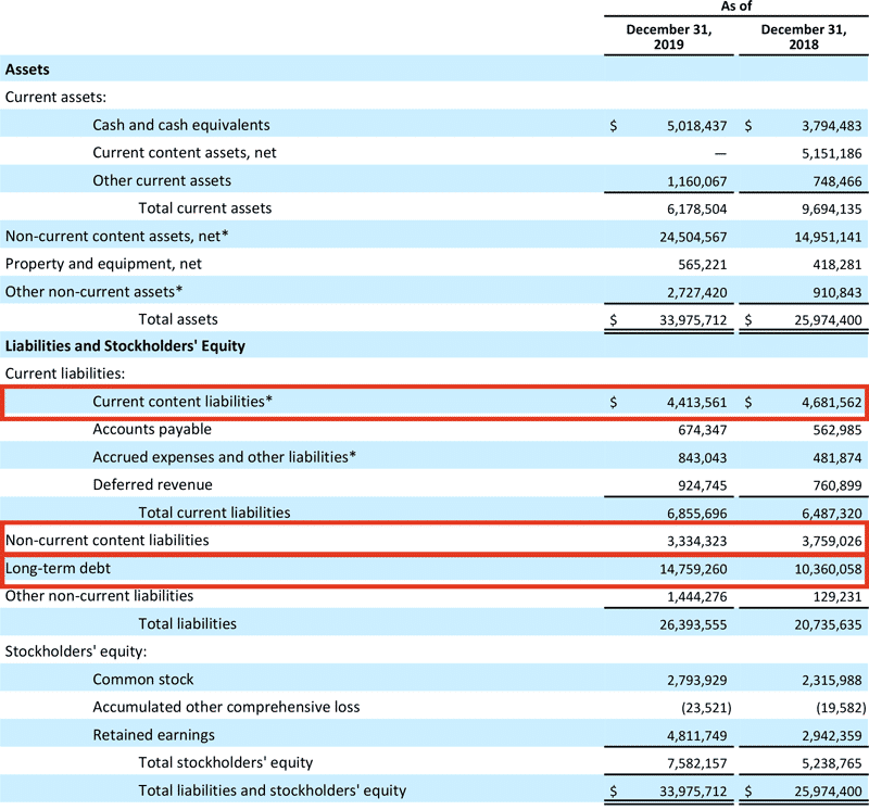 Netflix는 콘텐츠 자금을 조달하기 위해 부채에 덜 의존해야 하는 압박에 직면해 있습니다. 그러나 2019년 말에 Netflix는 장기 부채를 40억 달러 이상 늘렸습니다.
