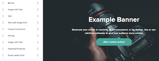 Teachable은 텍스트, 비디오, 오디오, 파일을 추가하고 객관식 퀴즈도 만들 수 있는 탐색하기 쉬운 편집기로 강의 레이아웃을 만들었습니다.