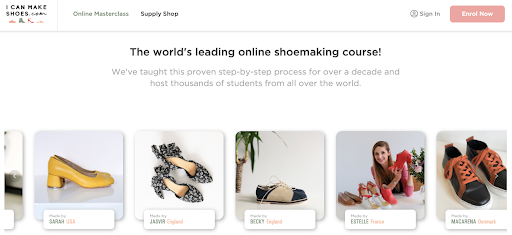 I Can Make Shoes는 오픈하는 순간부터 시선을 사로잡는다. 랜딩 페이지, 브랜딩, 글꼴, 색상 사용 - 명확하고 스크롤하는 것이 즐겁습니다.