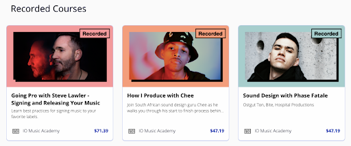 녹화된 과정 판매 페이지는 가장 중요한 정보와 해당 과정 가격만 표시하는 간단하면서도 효과적입니다.