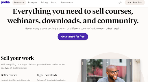 온라인 코스를 호스팅하는 것 외에도 Podia는 eBook, 오디오북 및 코스 보충 자료(예: 체크리스트 및 "치트" 시트)와 같은 디지털 다운로드를 판매하도록 설정합니다. 또한 일대일 라이브 코칭, 웨비나 및 회원 토론을 위한 온라인 커뮤니티를 포함하도록 교육을 확장할 수 있습니다.